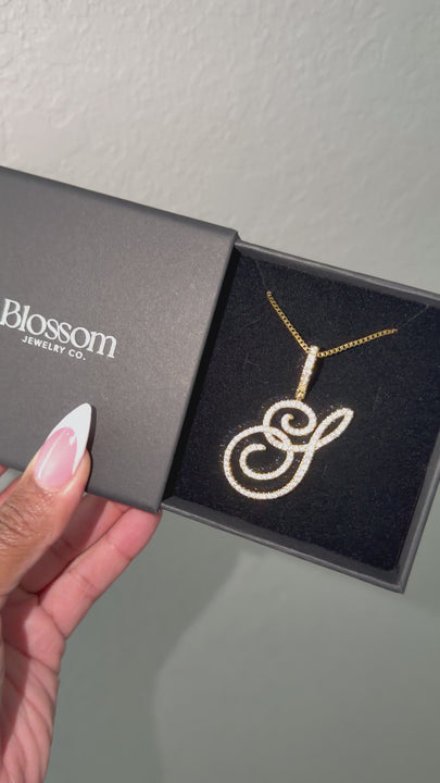 Bling Initial Script Necklace — Your Initial. Your Icon.”