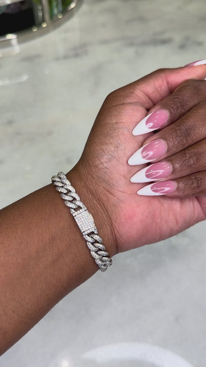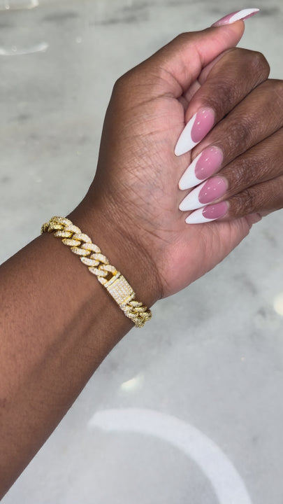 The Luxe Cuban Link Bracelet features 9mm thick links plated in 18k gold or white gold over premium brass, adorned with high-quality CZ stones. Tarnish-resistant, hypoallergenic, and perfect for stacking or wearing solo — a statement piece made for everyday luxe.