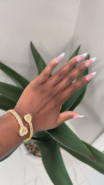 Baguette Heart Cuff Bangle — “Bold Hearts. Luxe Sparkle.”